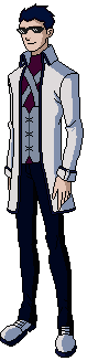 Vestimenta Héroe. Usa un sweter morado el cual cubre con una especie de "chaleco" de color gris, usa una bata blanca bastante larga por encima. Tiene pantalones negros y usa zapatos blancos de suela negra, normalmente se cubre el rostro con lentes oscuros para mantener su identidad protegida, mientras esta con otros héroes se los quita con tranquilidad